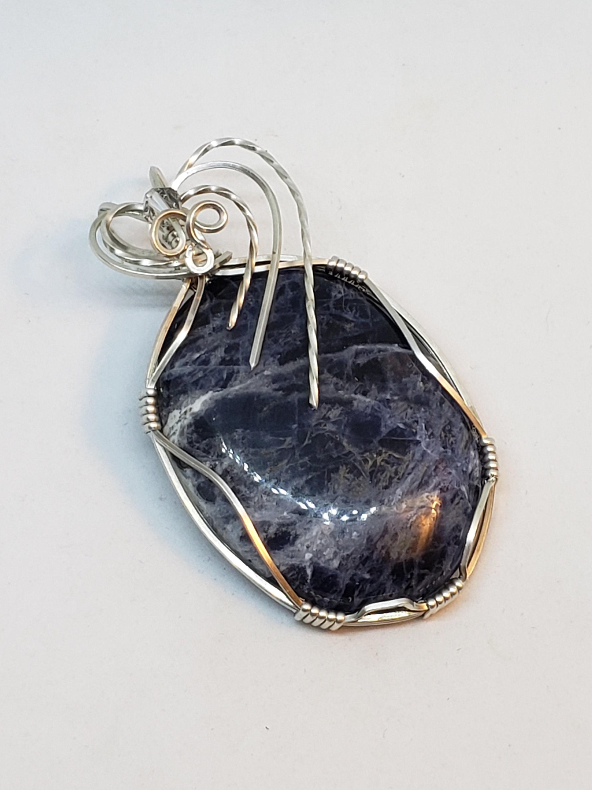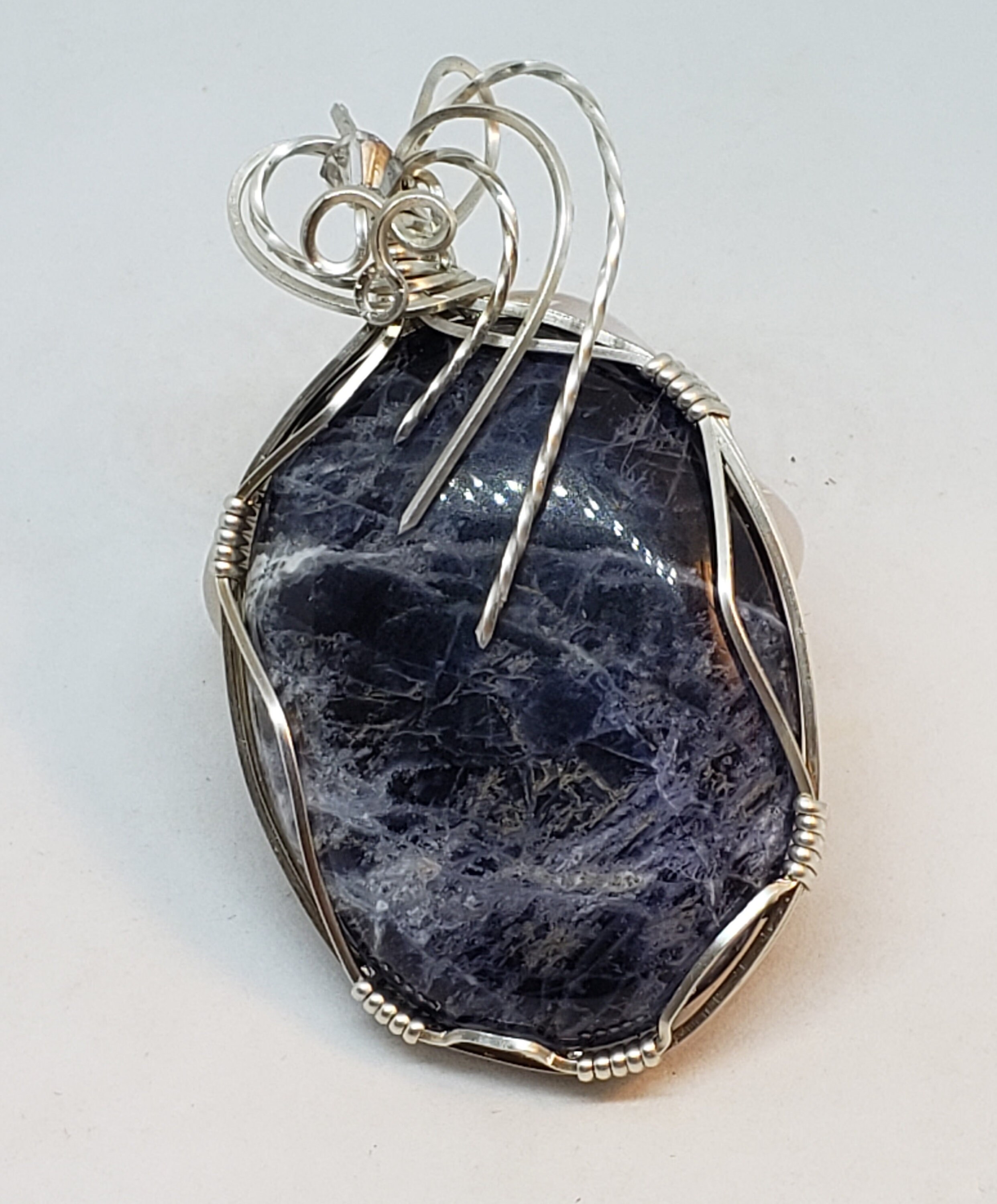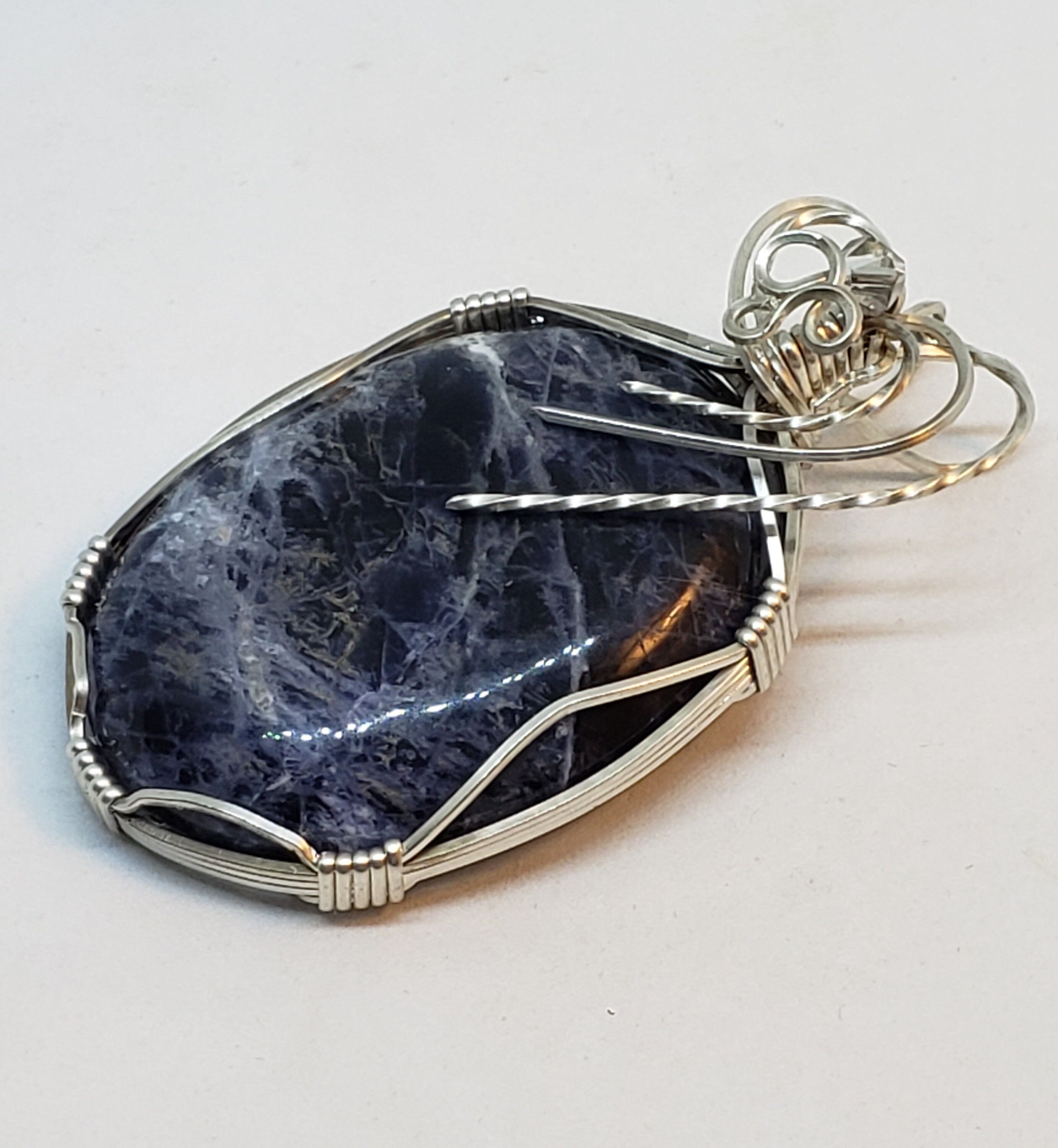 This large oval sodalite cabochon is wire wrapped in silver filled wire