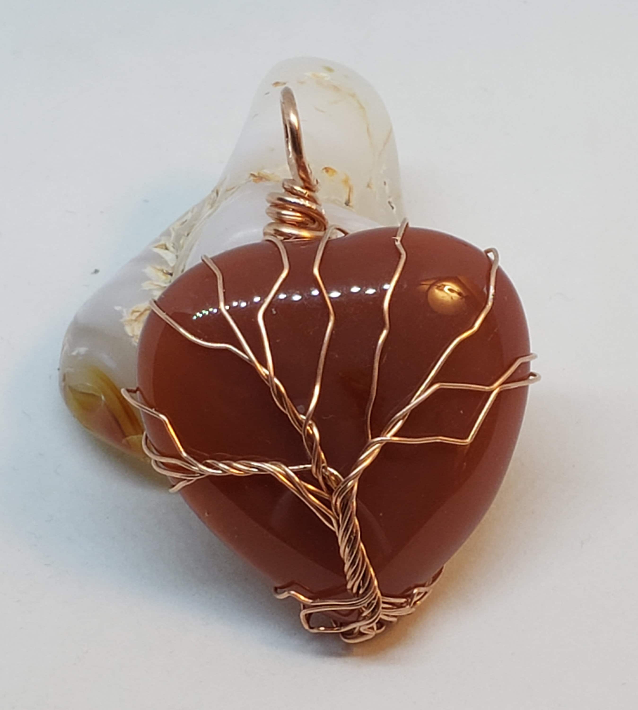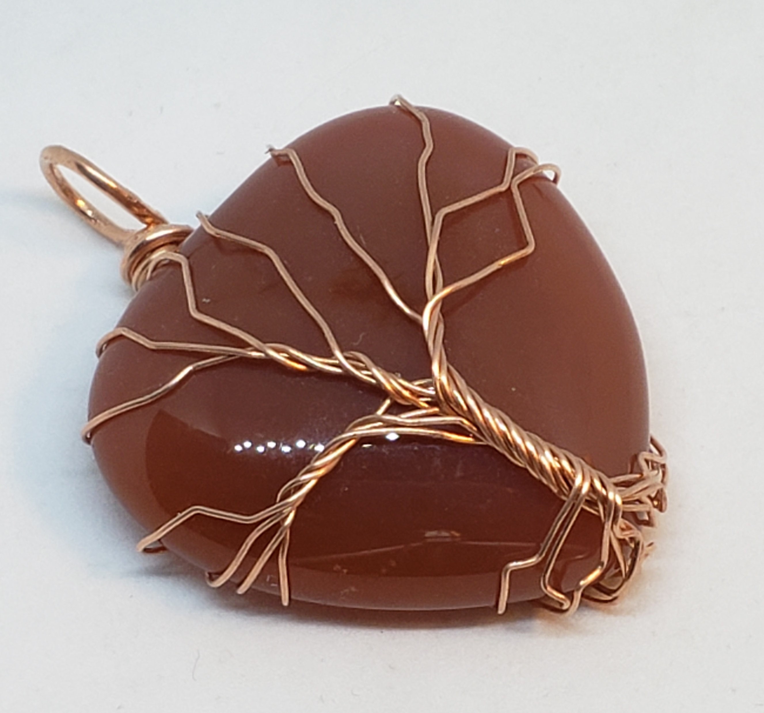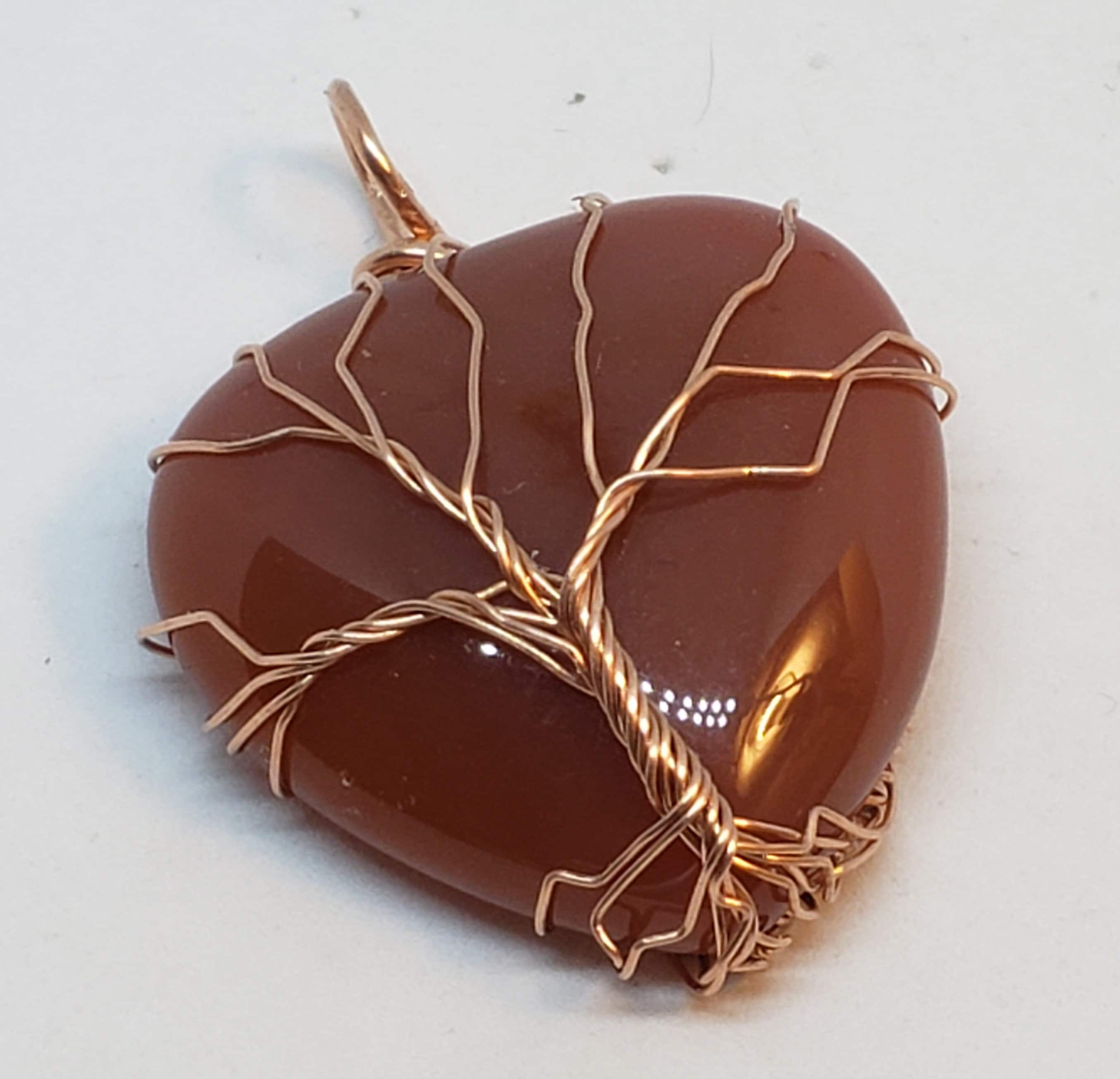 Wire Wrapped Carnelian Heart with tree of life in copper, pendant.