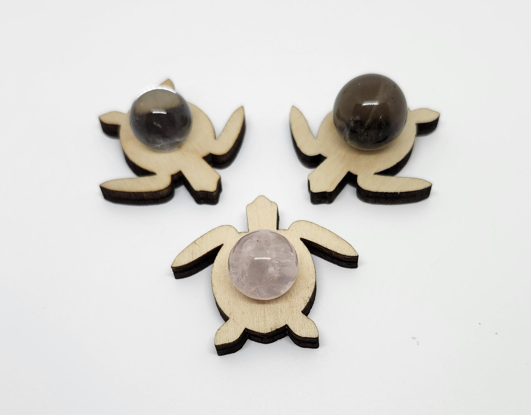 Wood laser cut sphere stand - mini turtle design with 16mm sphere randomly chosen.