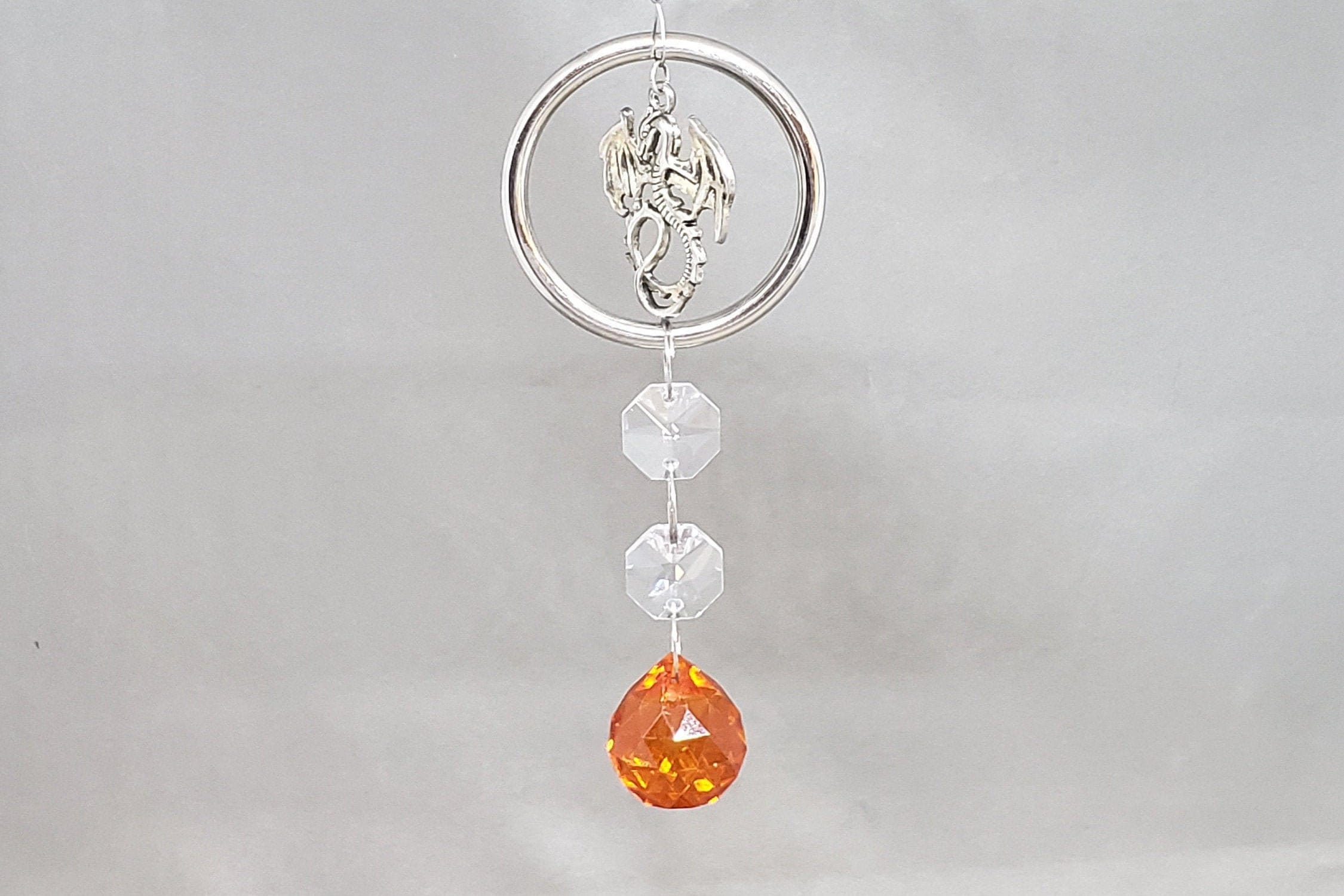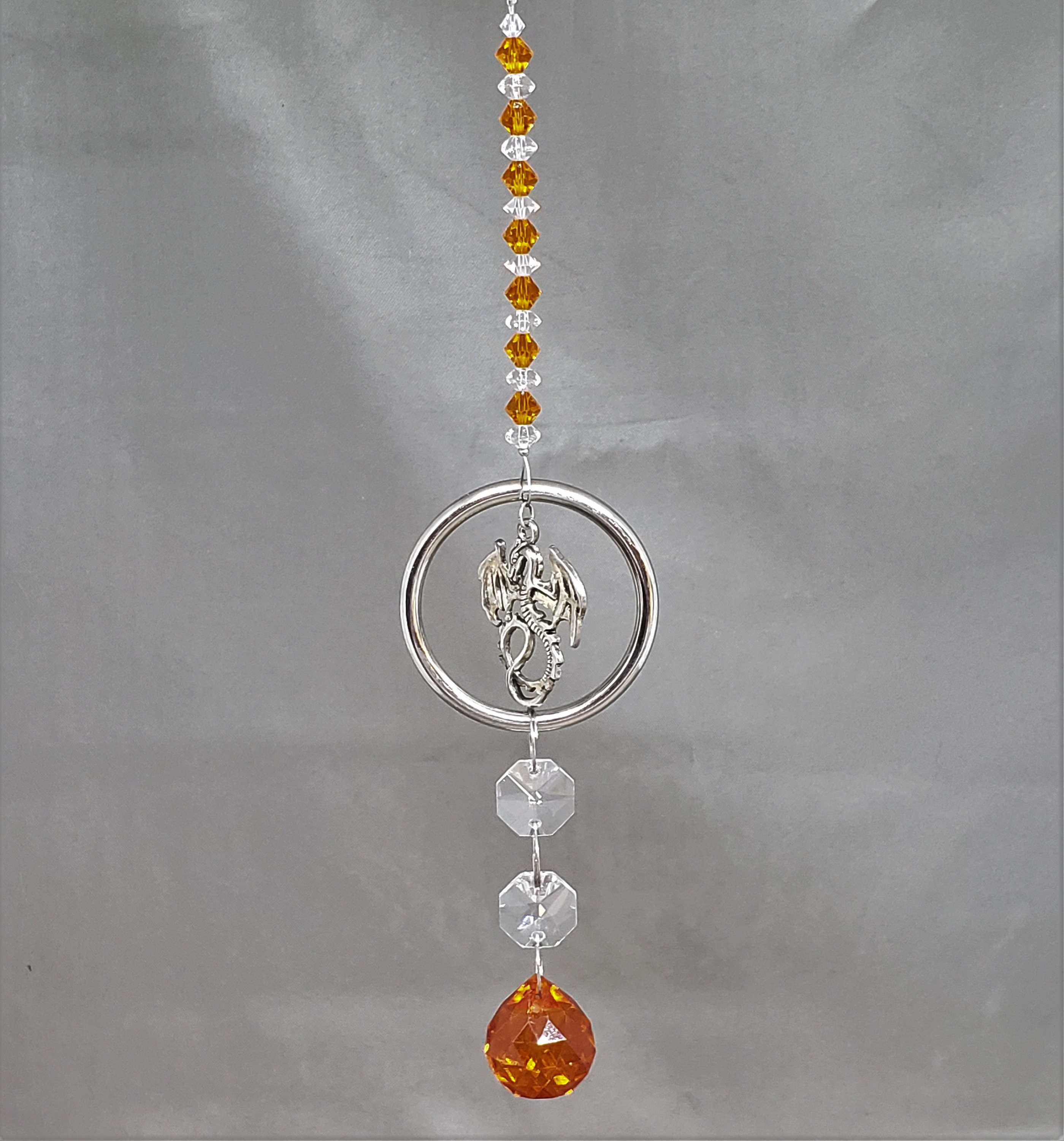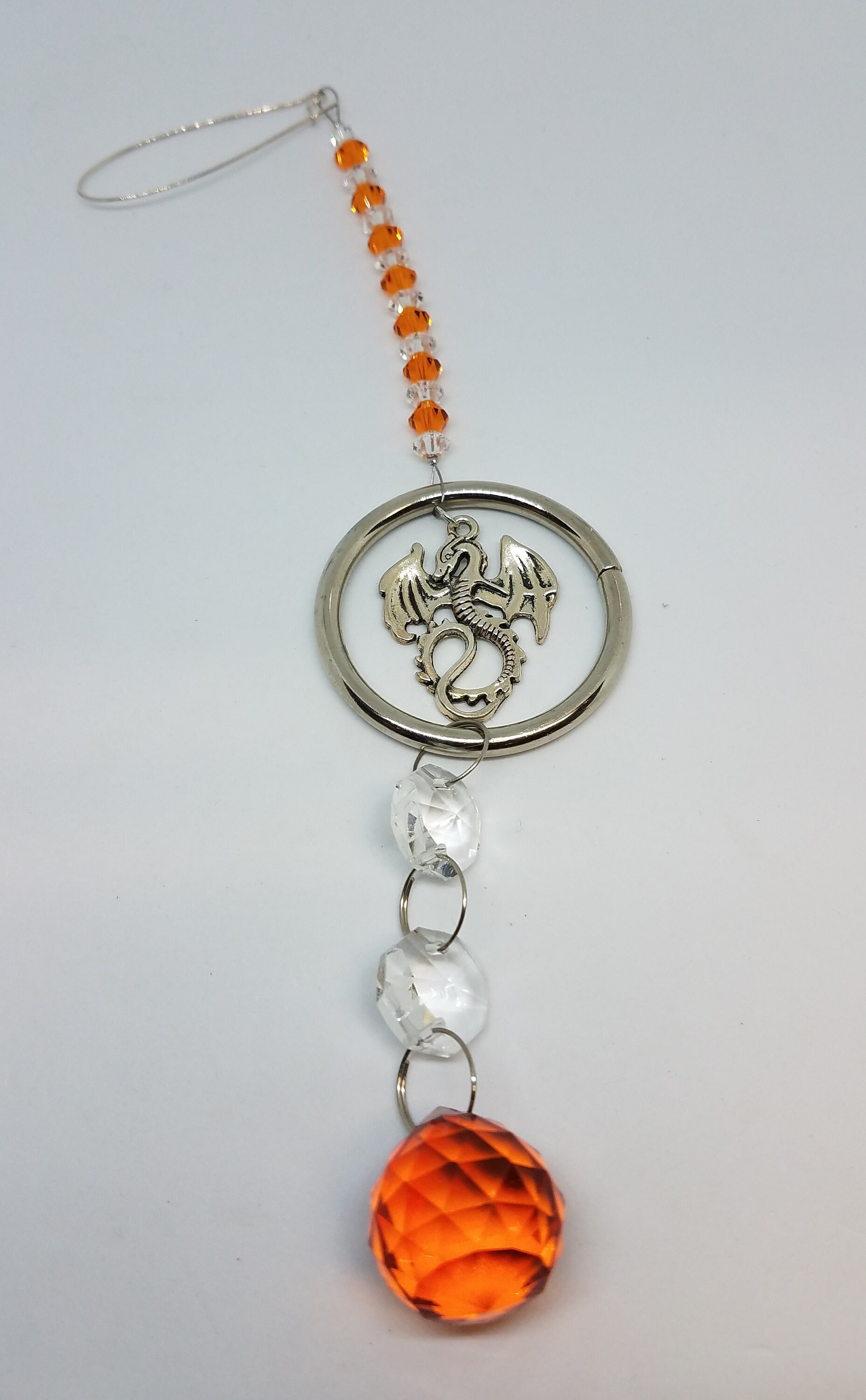 Beautiful orange and clear crystal suncatcher with dragon charm