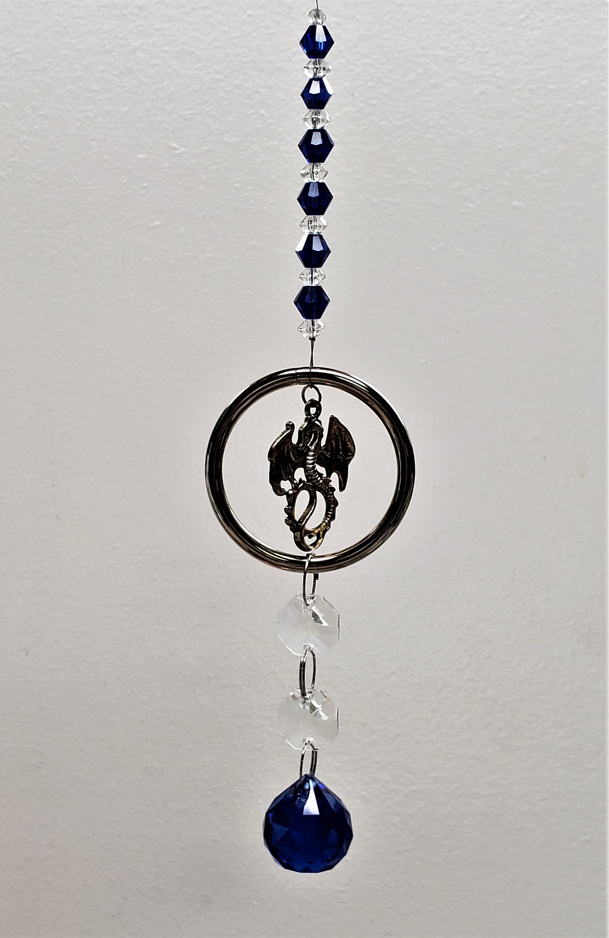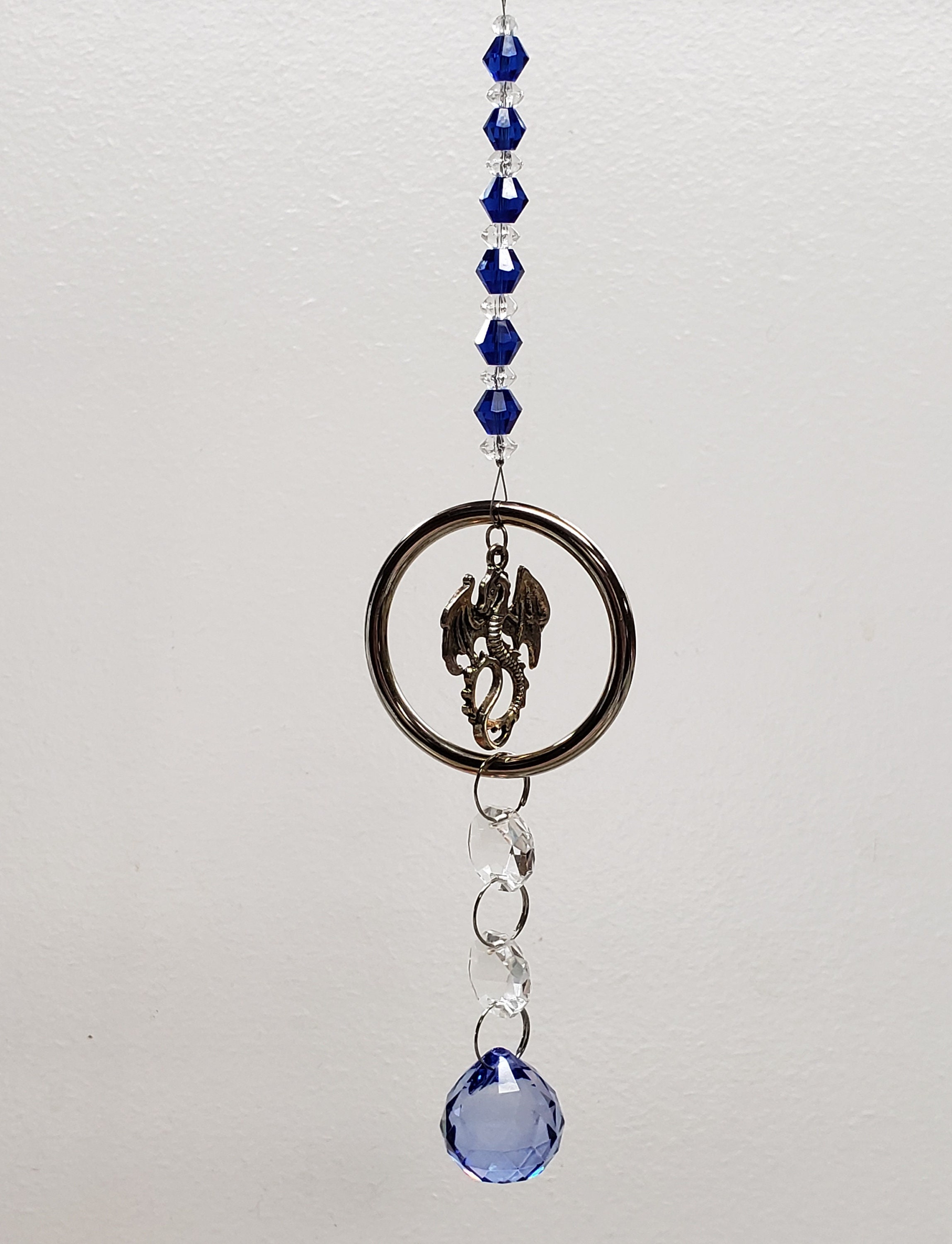 Beautiful Indigo and clear crystal suncatcher with dragon charm