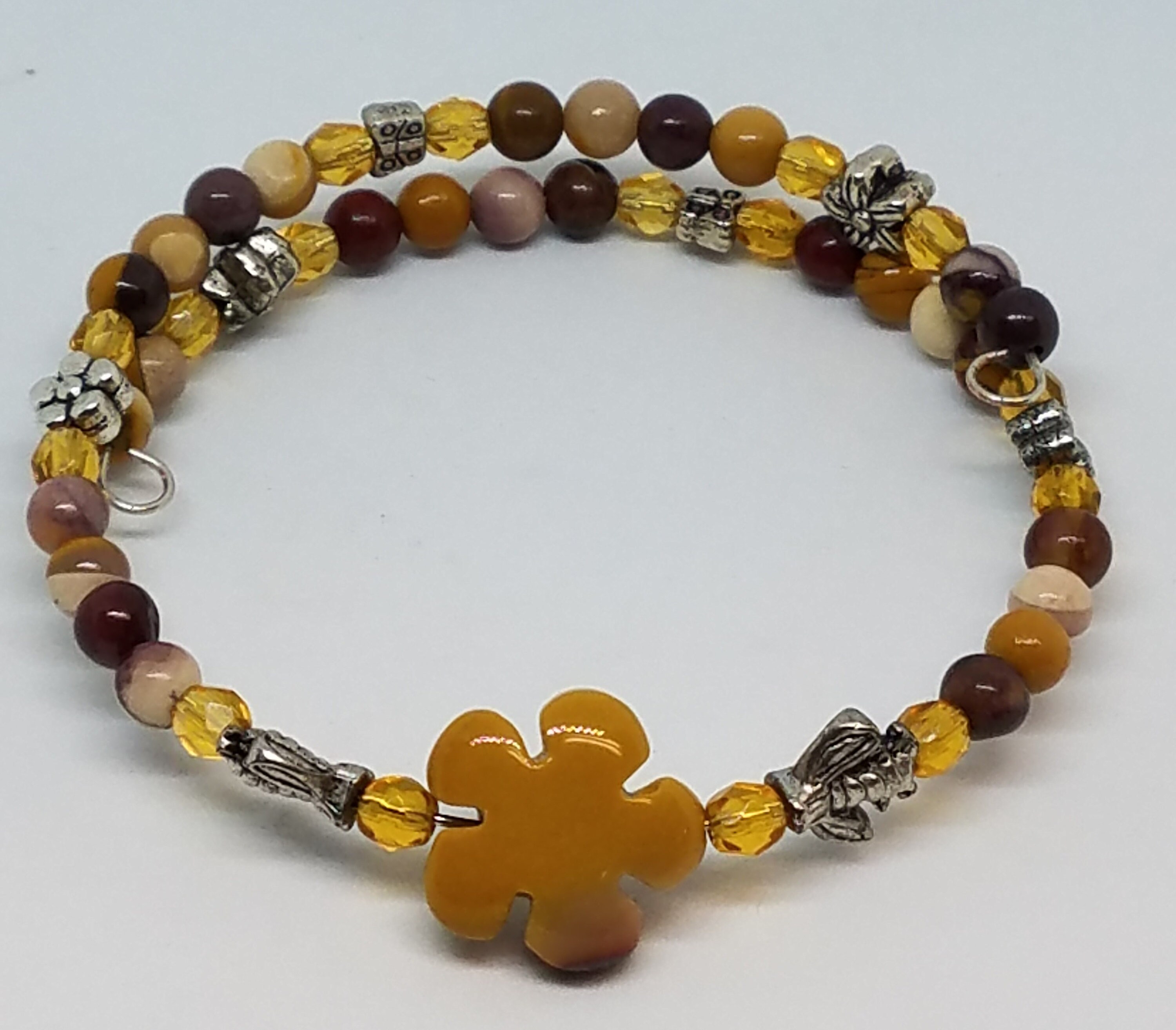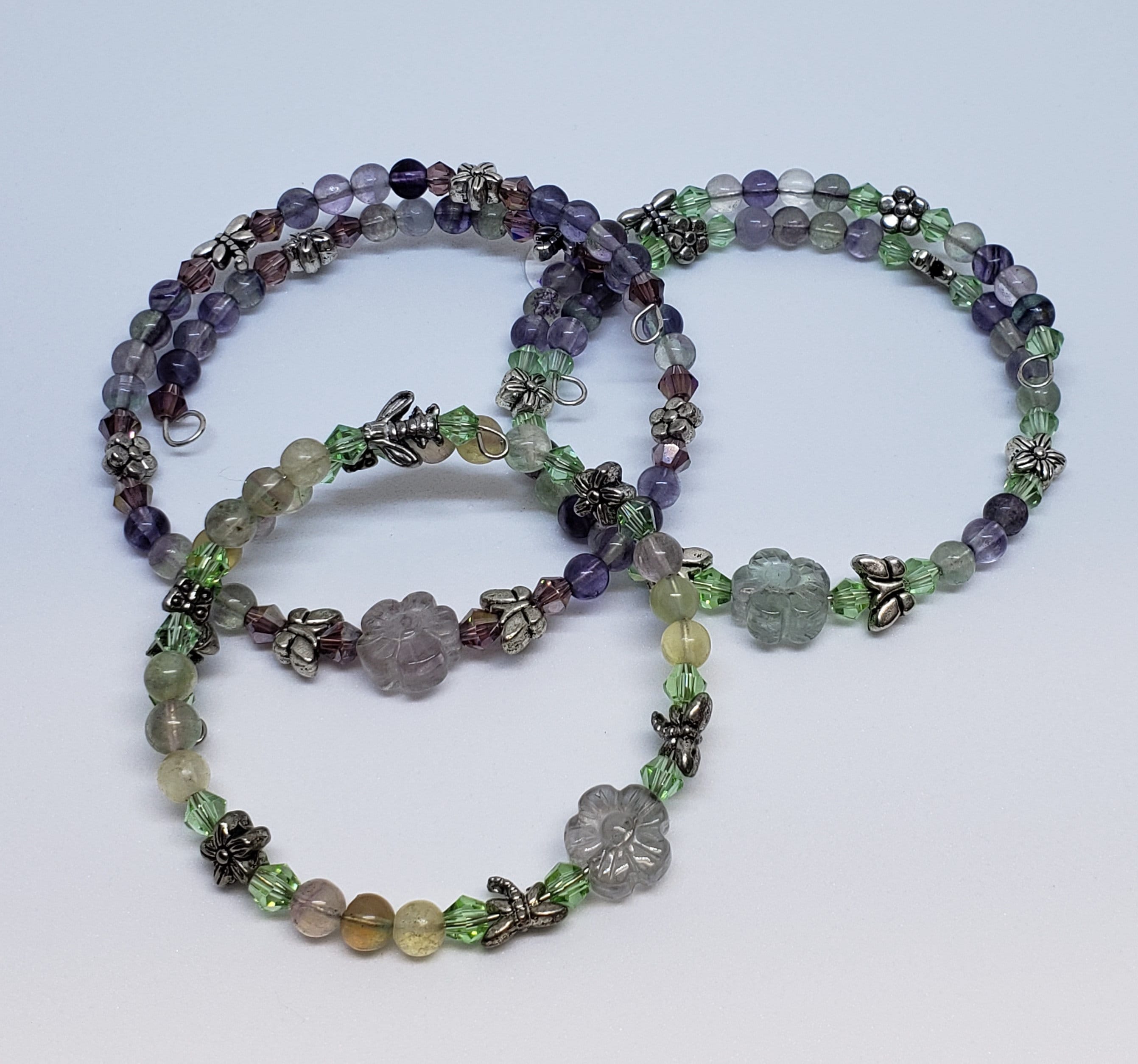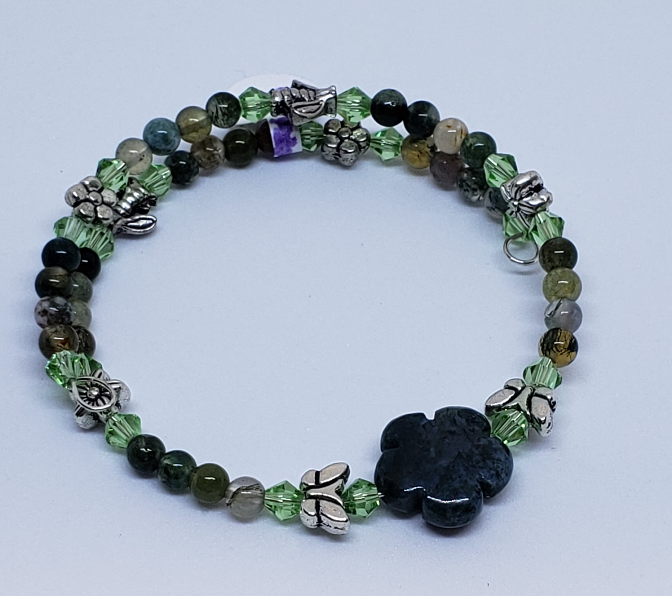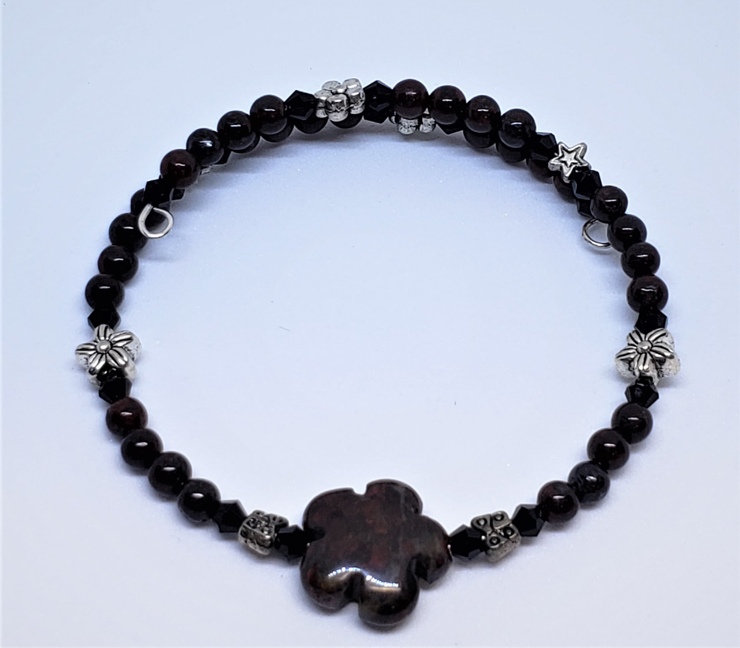 Stones include, rose quartz, red jasper, tiger eye, sodalite, green aventurine, mookite, and amethyst / lepidolite. Please specify stone choice.
