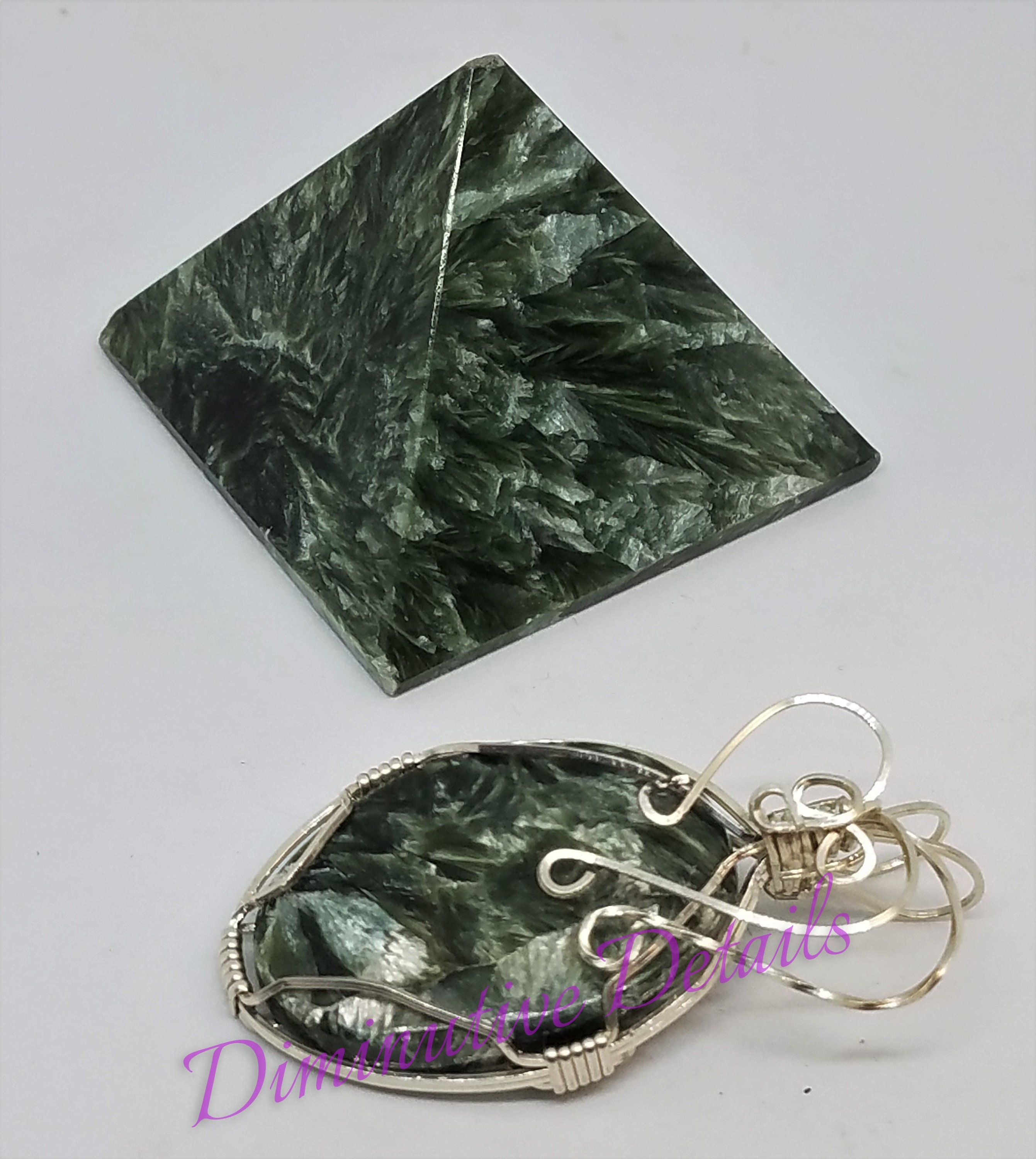 Seraphinite is found only in the Lake Baikal region of Siberia and is said to be a stone of Angelic Connection, regeneration and self healing.