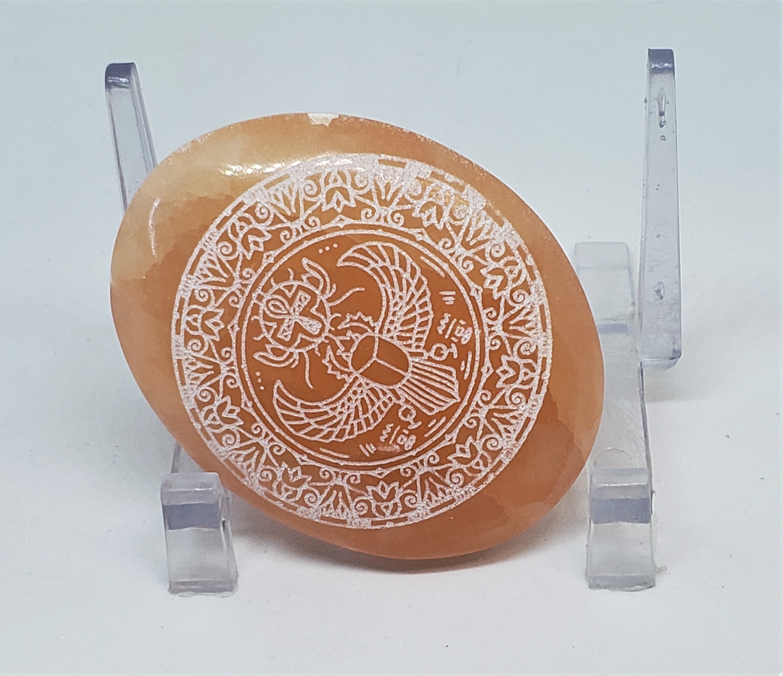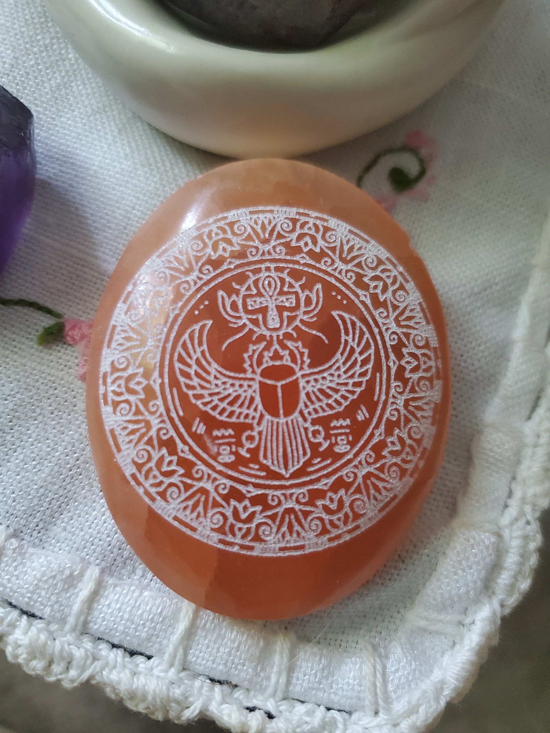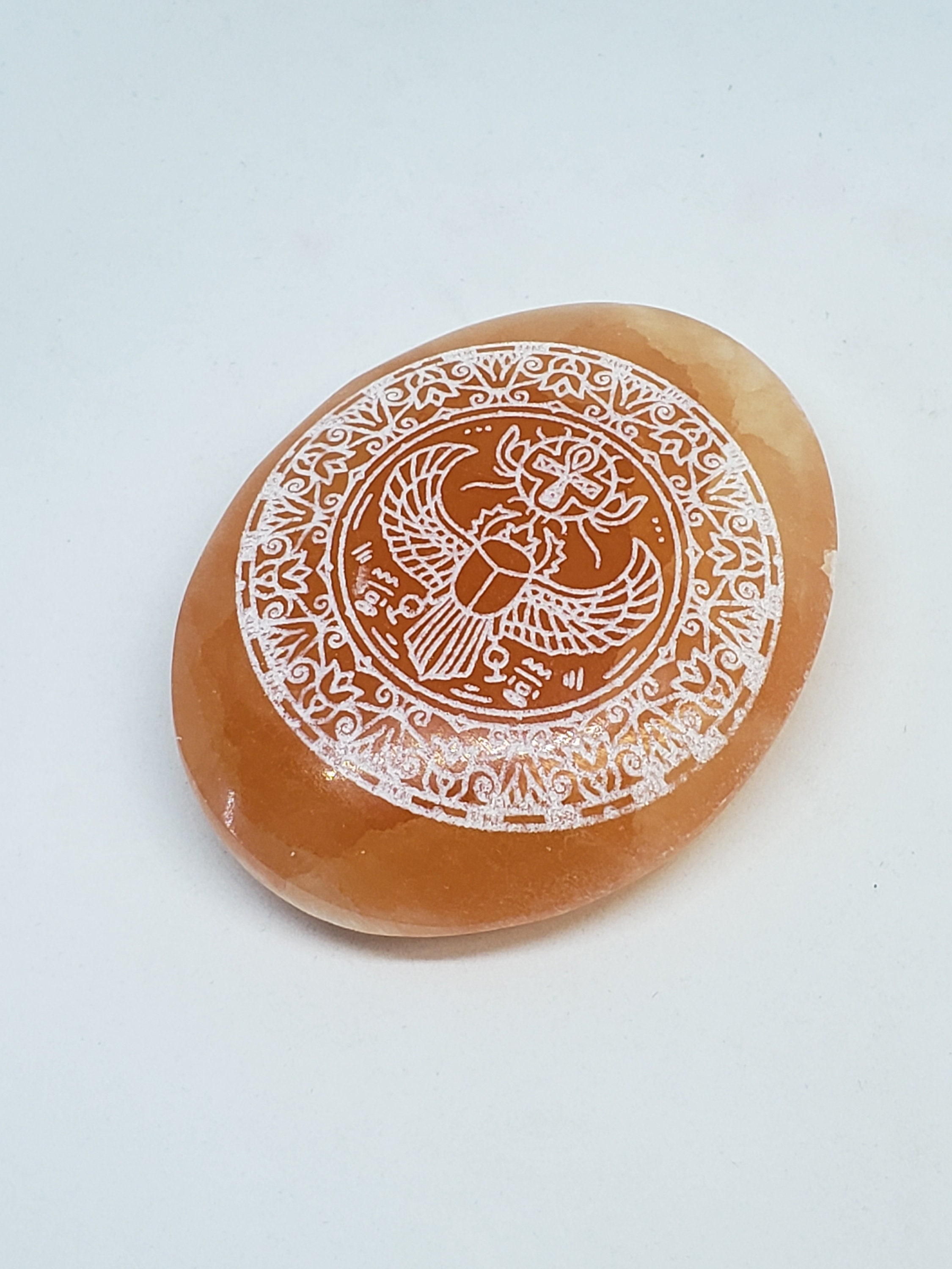 I'm so happy with my scarab etched red selenite stone! The detail is beautiful and I love how it feels when I hold it. It is being chared with the duty on my shamanic altar of Master Healer, which I have no doubt it will fulfill beautifully. I love it!
