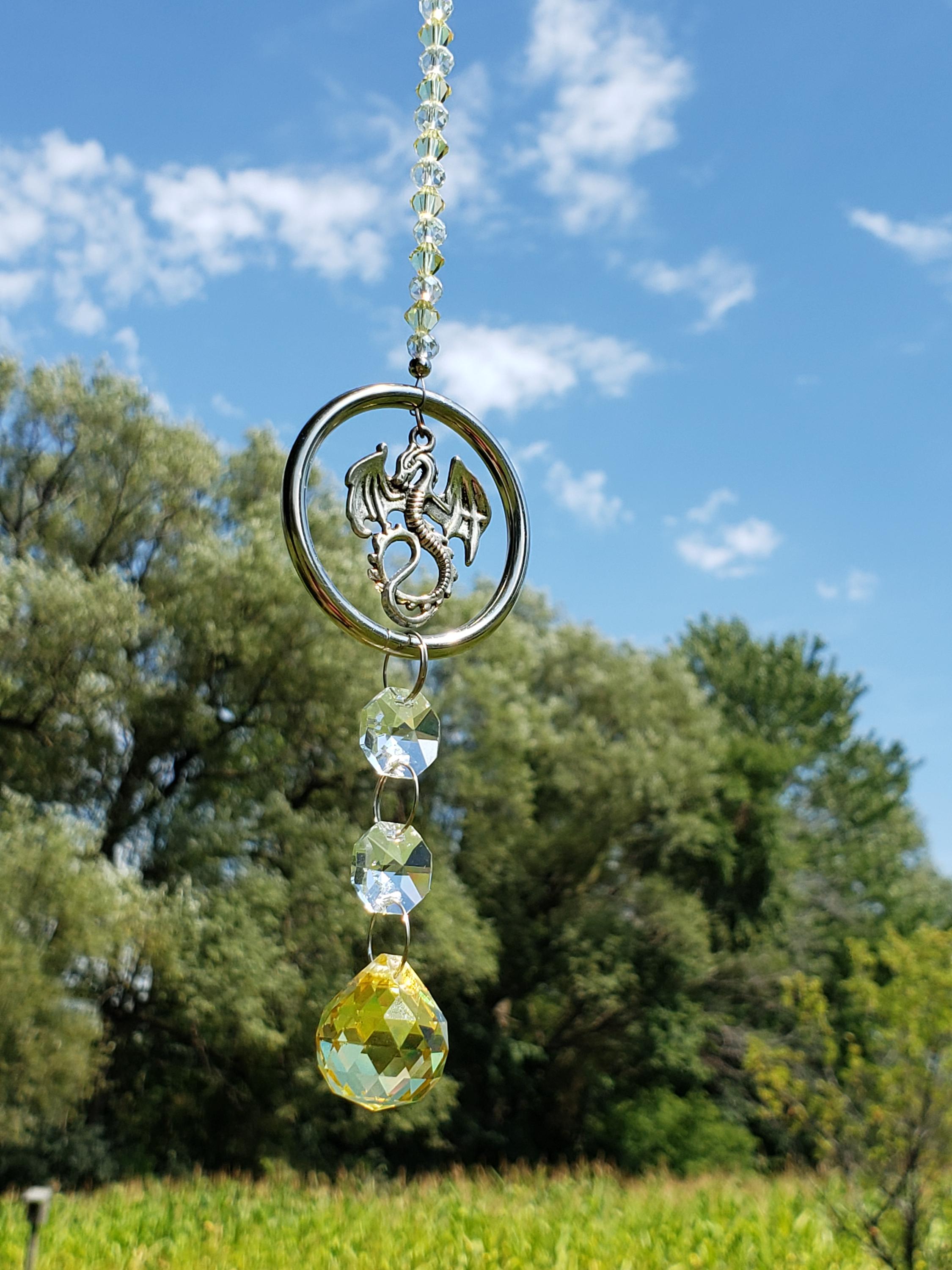 Beautiful yellow and clear crystal suncatcher with dragon charm