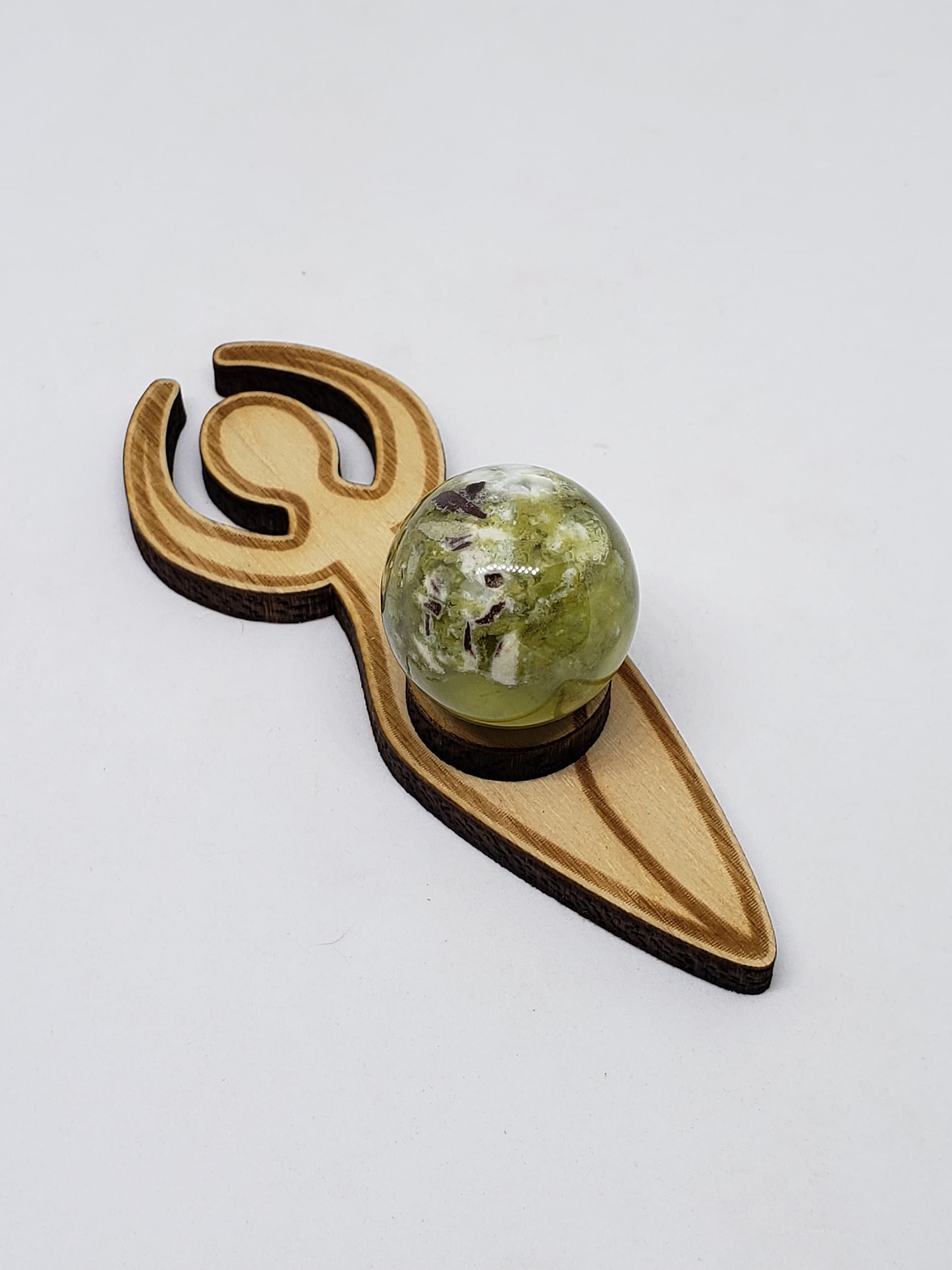 Sphere holder is 3.75 inches long and is pictured with spheres from 24 - 40mm in diameter